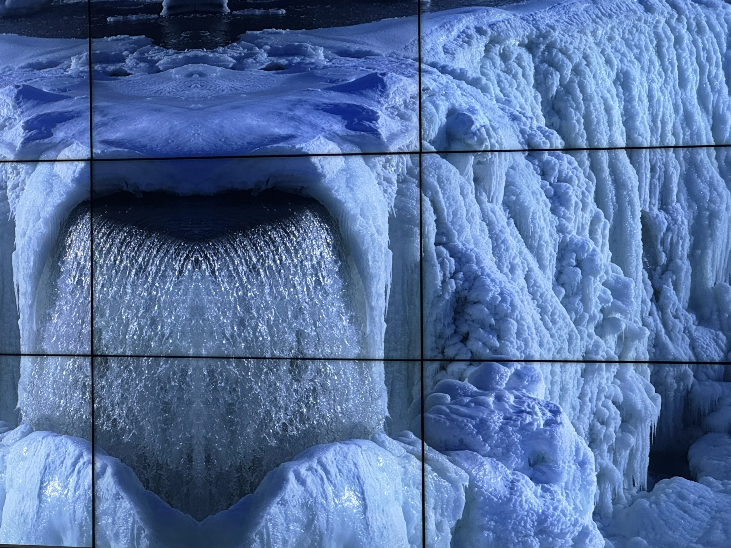 Developed at the Visualization Lab and Milieux during Plata’s undergraduate LePARC fellowship, and placing this composition on 27 speakers with the support of the lab and music faculty member Kasey Pocius, created an opportunity, along with the dimensions of the screen and room, to imagine a waterfall together through multichannel sound and video.